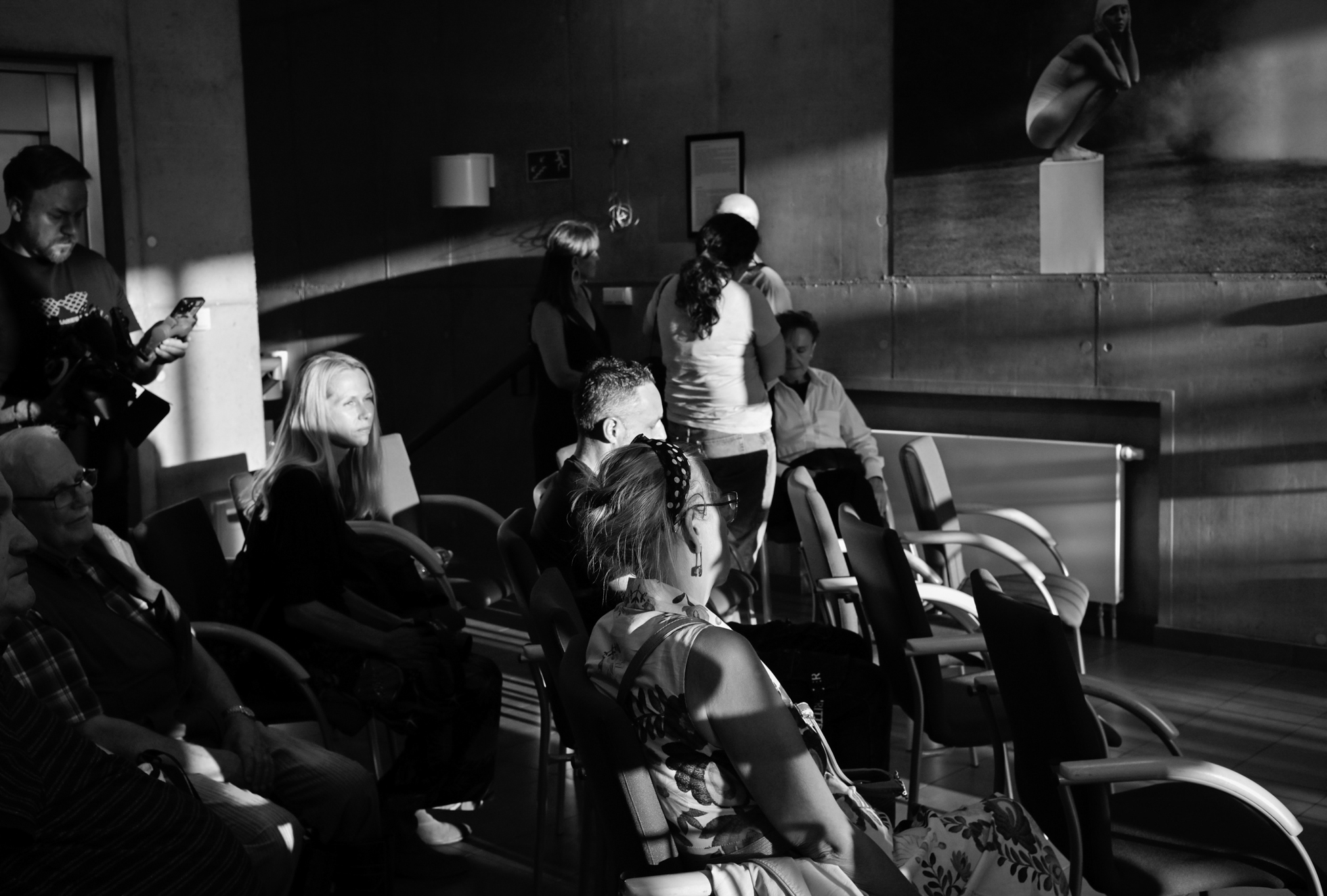 Publiczność, jak zwykle, dopisała – od lokalnych miłośników fotografii, lokalnych mediów: Myślenicki Serwis Informacyjny, SEDNO, Gazeta Myślenicka, przez przyjaciół galerii, aż po przypadkowych czytelników biblioteki, którzy zamiast po książkę trafili na sztukę. Wernisażowi towarzyszyły rozmowy, pytania i – co najważniejsze – żywe reakcje na prace: jedni dopatrywali się w fotografiach wspomnień własnego dzieciństwa, inni – cieni i niepokojów, jeszcze inni po prostu… dyskutowali o tym, jak artystce udało się tak pięknie uchwycić ciszę.