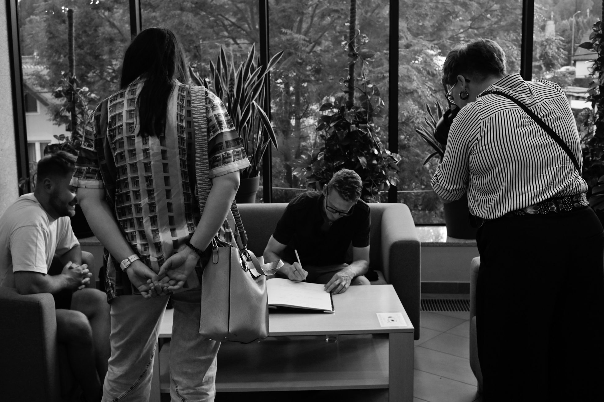 Nie zabrakło oczywiście części towarzyskiej: tradycyjnego poczęstunku i „toastu za sztukę”, długich rozmów w kuluarach i wspólnych zdjęć – bo przecież nie ma lepszego paradoksu niż robić fotografie na wernisażu wystawy fotografii o niepamięci.